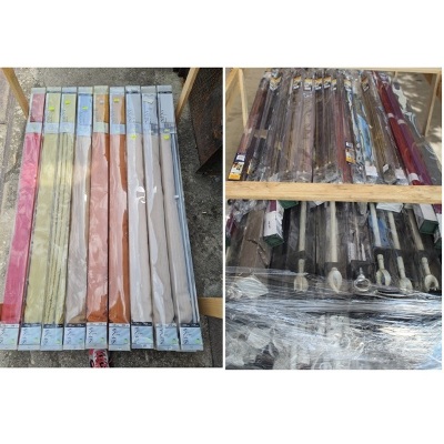 Nuova vendita fallimentare Complementi d'arredo: Tende a pacchetto, a rullo e veneziane, bastoni in kit e bastoni per tende con accessori Misto in modelli, colori e misure Totale 33000 pezzi in 32 pallets